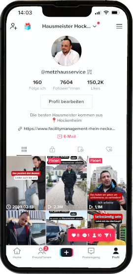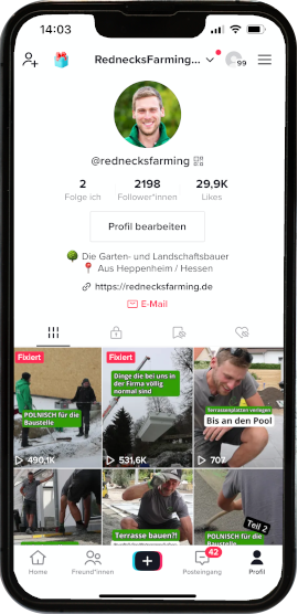Wir haben bereits die Communitys von Handwerksunternehmen aufgebaut – jetzt bauen wir deine auf. Mit Video-Content auf bekannten Plattformen wie Instagram, TikTok und Youtube